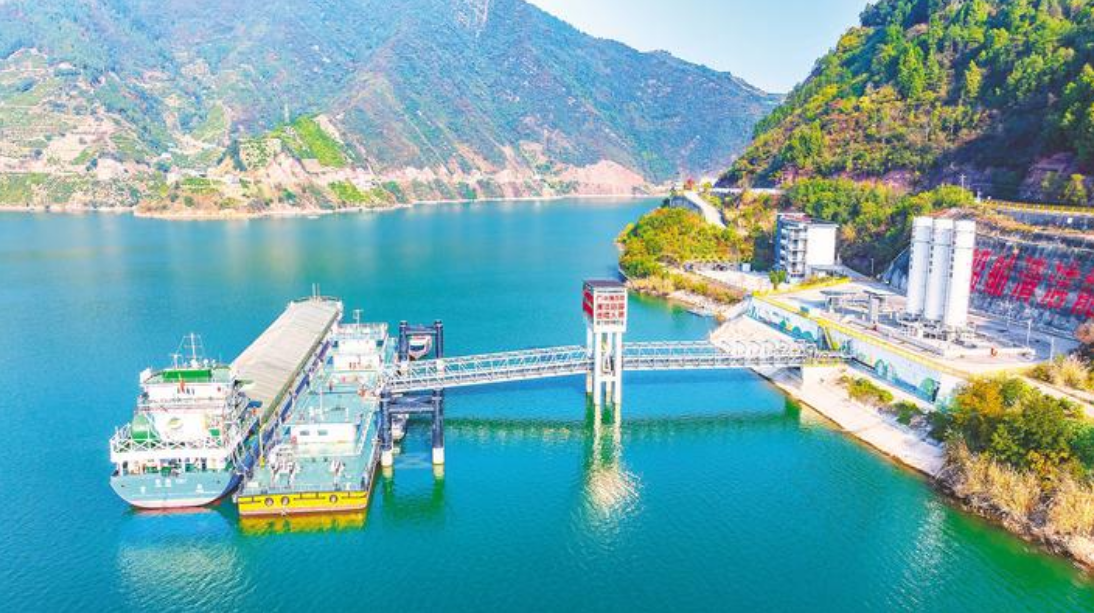 On December 14, a cargo vessel was seen refueling with liquefied natural gas(LNG) via dedicated pipelines at the LNG bunkering terminal in Guizhou Town, Zigui County. As the only year-round operational LNG marine refueling station in the Three Gorges Reservoir area, the terminal enables vessels to reduce annual pollutant emissions by over 10,000 metric tons and lower fuel costs by approximately 30%. (Hubei Daily: photo from pic.hubeidaily.netbyPeng Qiang)