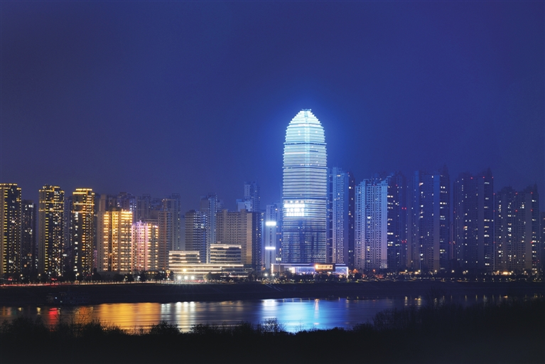 Onthe evening of March 17, the rain lifted over Yichang’s waterfront, revealing a breathtaking scene: against the night sky, the 220-meter-tall “Yichang Star”, the tallest building in Yichang, shone with striking brilliance. (Sanxia Daily: Reporter/Huang Xiang)