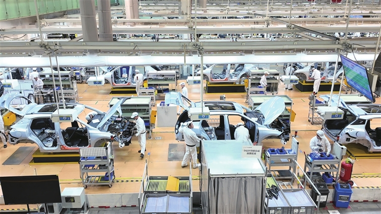 On March 26, the production workshop at the GAC Yichang plant in Xiaoting District was operating at full capacity, with its intelligent assembly lines running steadily. The company is accelerating production to fulfill orders, aiming for a strong start to the first quarter. (Sanxia Daily: Reporter/Xiong Xiaolei, Correspondent/Chen Xin)