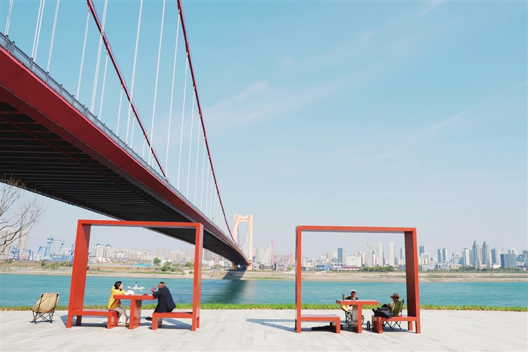 On April 5, residents enjoy the view and relax under the bridge.
