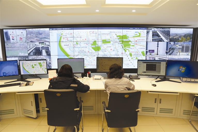 浦华三峡水务供水调度中心正在对供水情况进行监测和合理调控。