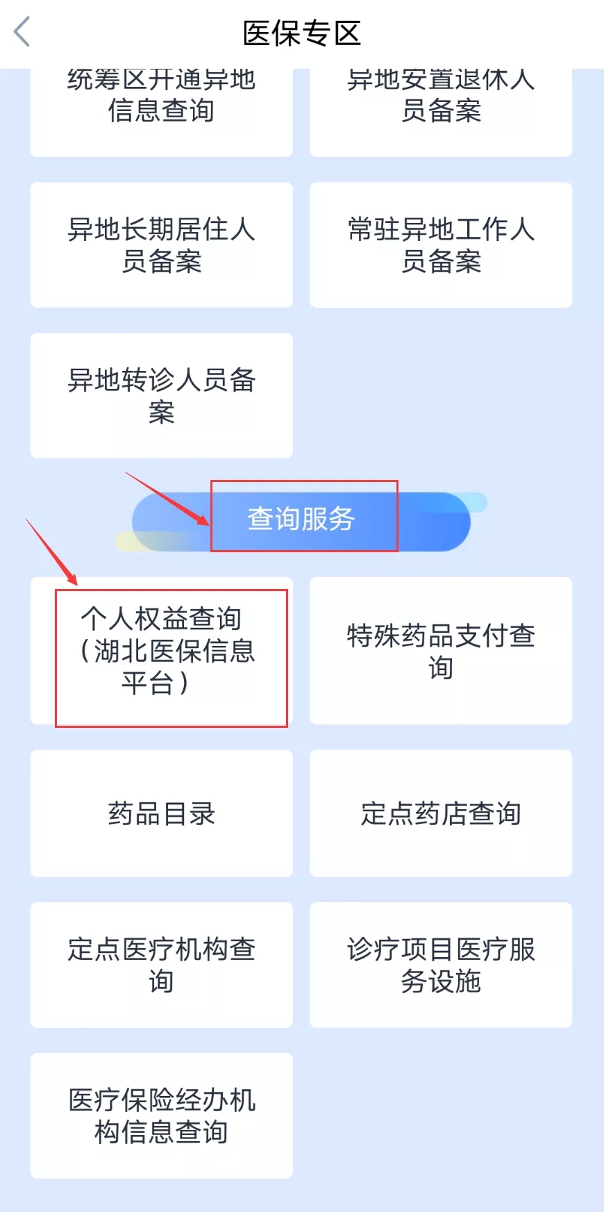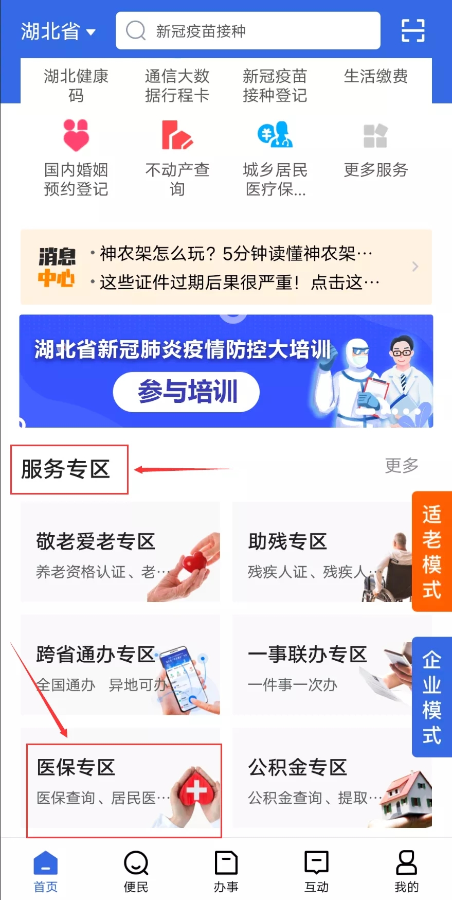 注册登录后,在首页的服务专区中找到医保专区板块。