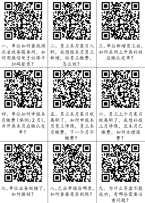 答:可以在系统导出明细进行核对,查询具体步骤参见《省企保集中系统网厅操作“码上知”》第17个二维码,在“单位综合信息查询”模块下选择“征缴相关”,分险种查看或导出缴费信息及缴费明细。