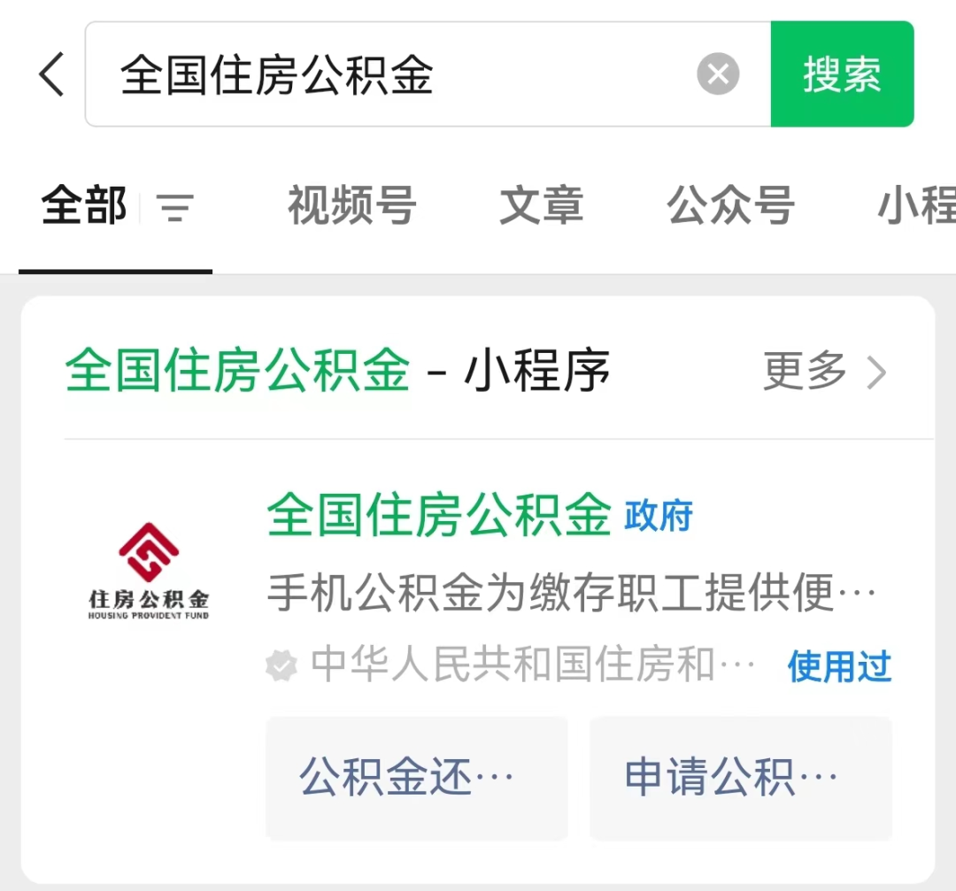 第一步:微信搜索“全国住房公积金”小程序