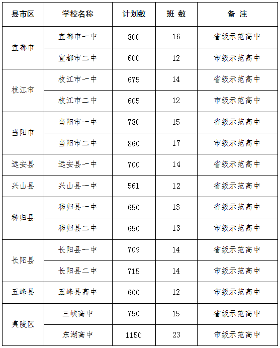 2023年宜昌市普通高中招生计划(一)