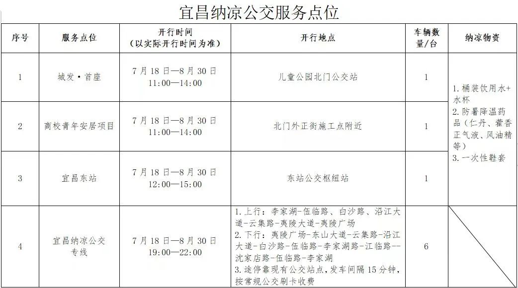 新增候车纳凉点 开通纳凉公交线 宜昌纳凉公交第二季18日开启