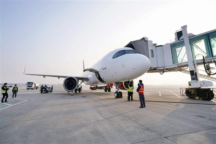 HO1893吉祥航空深圳——宜昌航班降落三峡机场3200米跑道上。(三峡日报全媒记者 王英 通讯员 王婷婷 摄)