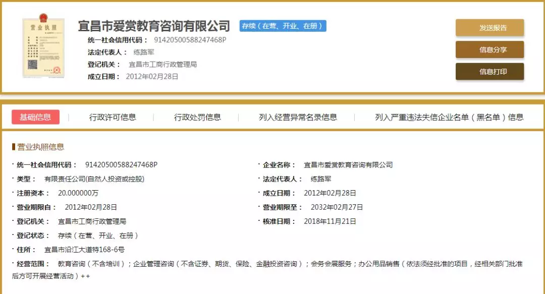 2.企业名称:宜昌市爱赏教育咨询有限公司