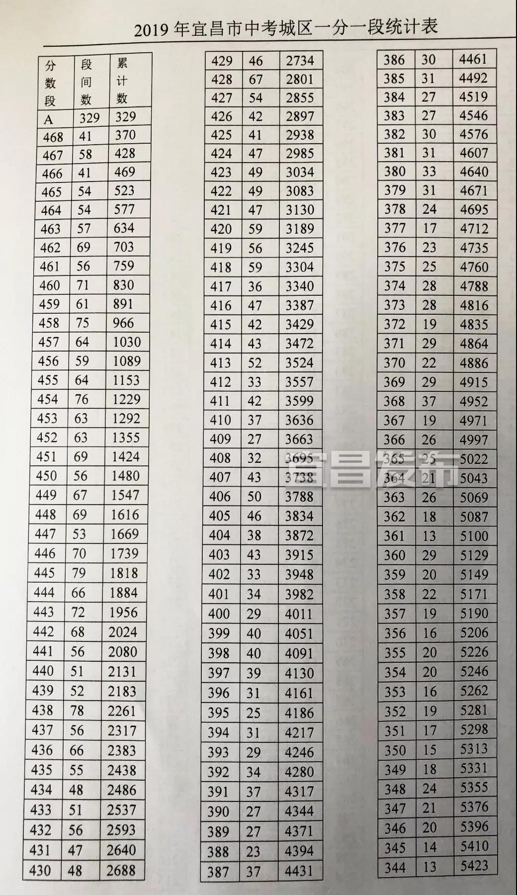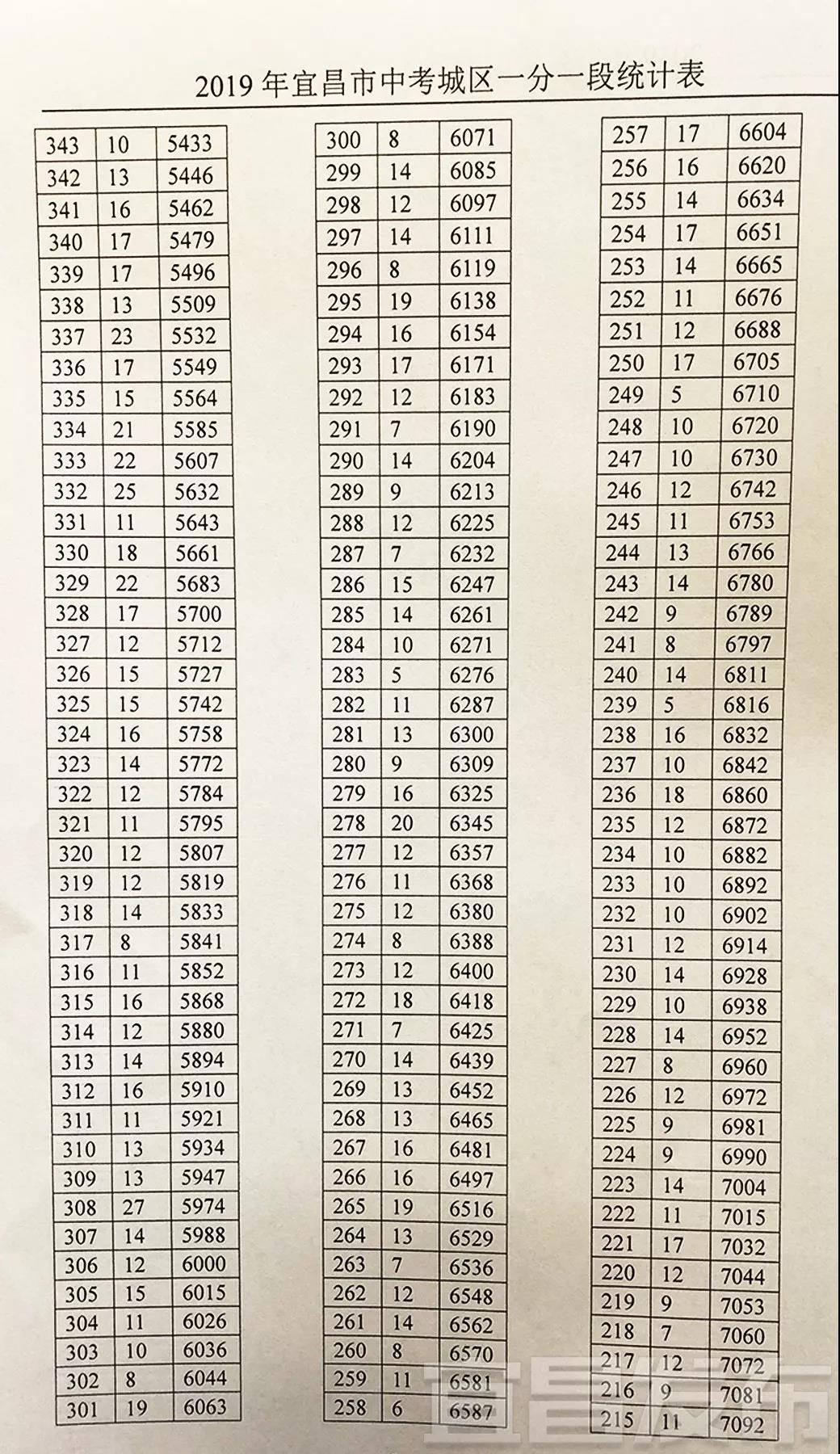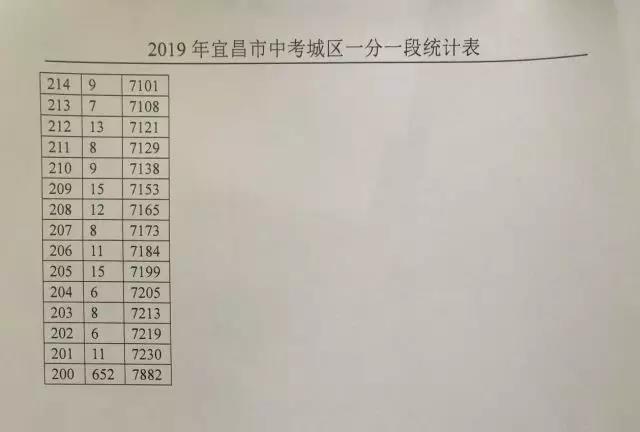 城区中考成绩一分一段表