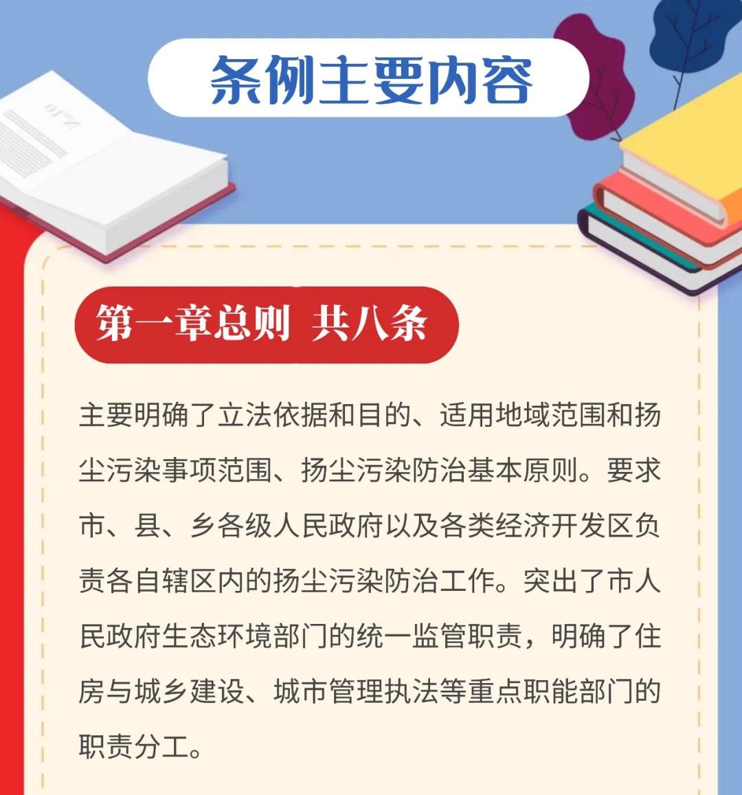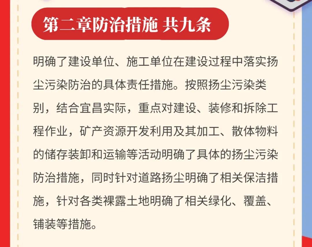 《宜昌市扬尘污染防治条例》(以下简称条例)2020年3月1日起正式施行,通过制定条例,能依法解决扬尘污染防治中的突出问题,实现扬尘污染防治全民共建共治共享,进一步改善大气环境质量,切实增强市民的蓝天幸福感。条例共五章二十九条,主要规定了总则、防治措施、监督管理、法律责任、附则等五个方面的内容。