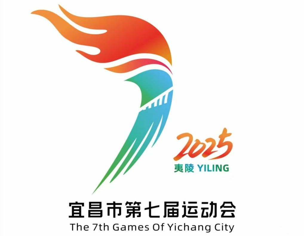 会徽主体采用字母“y”(代表‘宜’昌、‘夷’陵)结合数字“7”(象征第七届),构成火炬形态,上半部分熊熊燃烧的火焰代表生生不息的体育精神,下半部分则巧妙地融合了跑道和三峡大坝剪影。既使用蓝绿冷色调突出山水宜昌的地理特色,又通过橙红暖色调体现速度与激情。整体构图犹如一个恣意奔跑的运动员,深刻诠释宜昌人民拼搏、积极、向上的精神风貌。