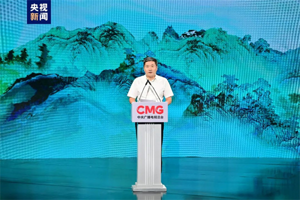 6月19日,中央广播电视总台举办2023端午特别节目发布会,集中展示多项节目创新亮点。中央广播电视总台副台长王晓真与湖北省委宣传部副部长陶宏家、宜昌市委书记熊征宇共同揭晓由中国书法家协会主席孙晓云题写的片名——“碧水长歌颂端阳”。中央广播电视总台相关部门和湖北省、宜昌市的相关负责人参加发布会。