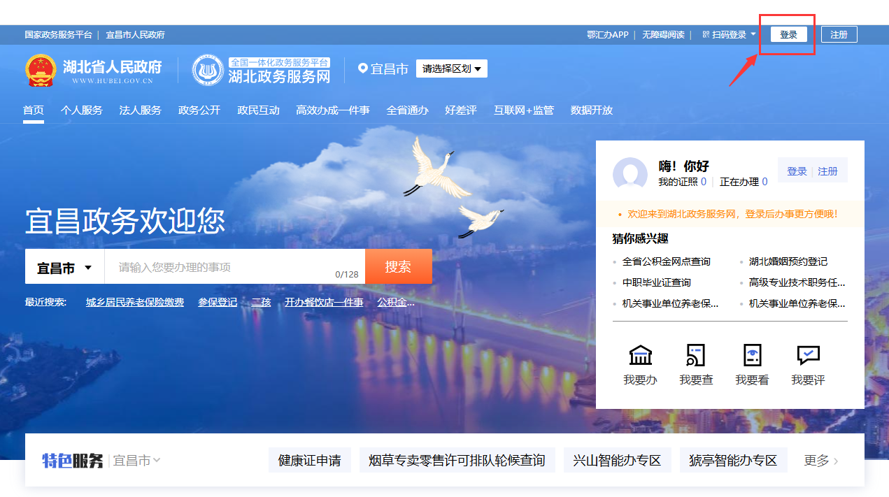 ①打开湖北政务服务网(http://zwfw.hubei.gov.cn/),找到注册登录。