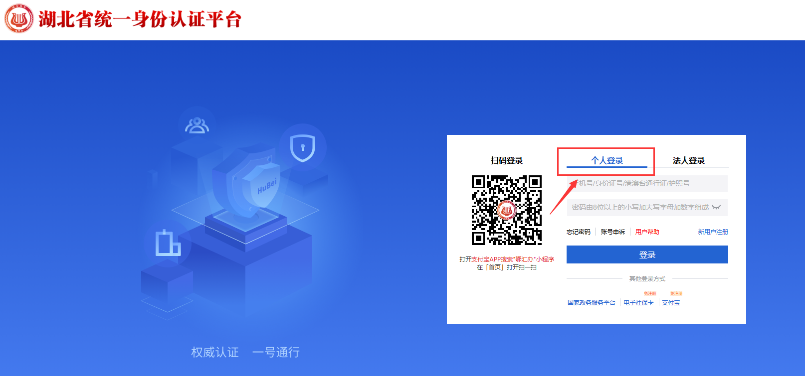 ②填写个人信息进行注册、登录(或申请人本人使用“鄂汇办”APP扫码登录)。