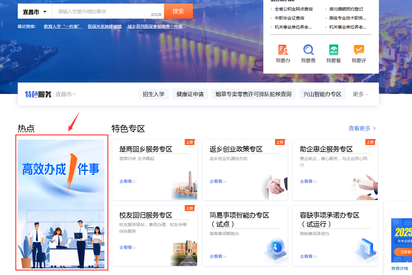 ③在湖北政务服务网首页选择“高效办成⼀件事”专栏点击进入。