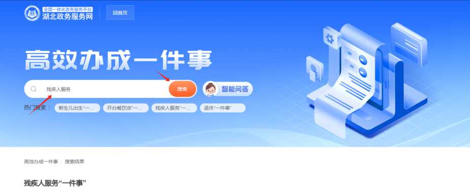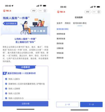 ④在搜索栏输入“残疾人服务”,点击搜索。再点击“立即办理”,办理人员根据自身实际情况,选择办理区域,按照提示引导,逐步办理。