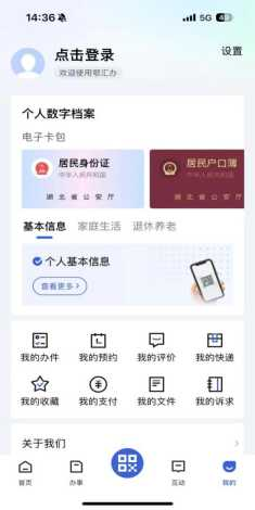 ①打开鄂汇办APP找到我的-点击登录填写信息进行个人信息注册并登录。