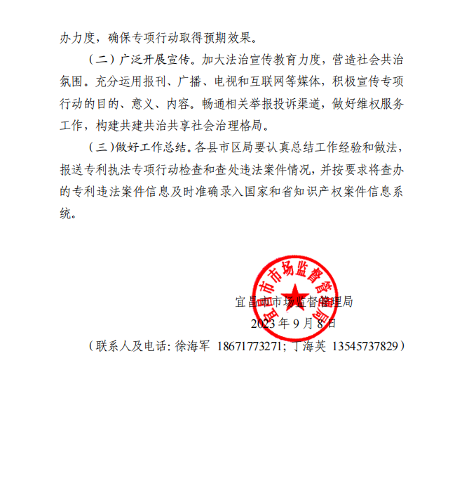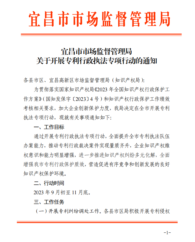 宜昌市市场监督管理局关于开展专利行政执法专项行动的通知